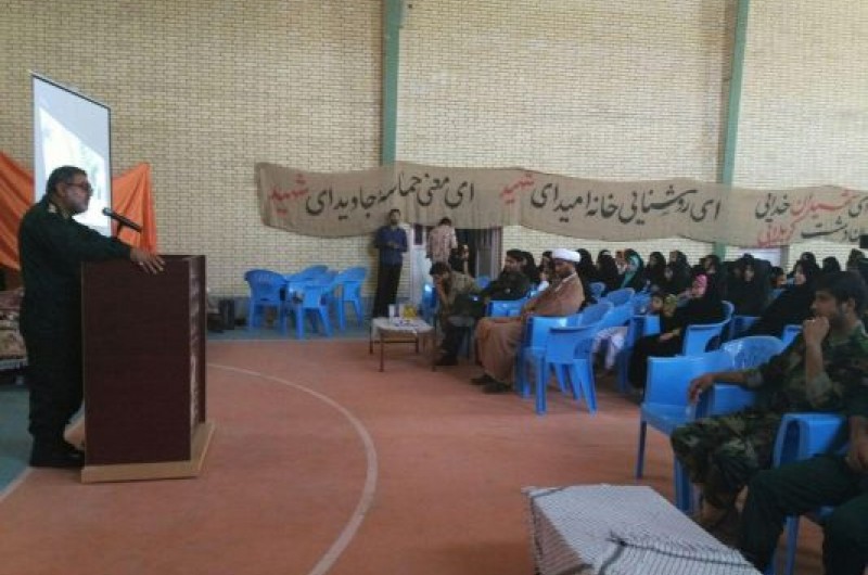 گفتني است؛ در اين مراسم خانم خواجه داد فرزند يكي از جانبازان به قرائت دكلمه پرداخت و در پايان از دختران باحجاب و محجبه شهرستان خاش تجليل شد.
