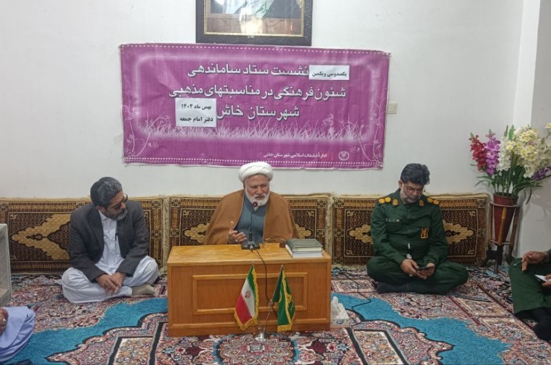 تفتان ما،در یکصد و سیویکمین جلسه ستاد ساماندهی شئونات فرهنگی در مناسبتهای مذهبی شهرستان خاش که با محوریت برنامهریزی جشن نیمهشعبان و به میزبانی دفتر امام جمعه برگزار شد، حجتالاسلام والمسلمین دهقان با تشریح جایگاه نیمهشعبان در تقویم مذهبی، این آیین را فرصت ارزشمند برای بصیرتافزایی، تقویت پیوند مردم با ولایت و ارتقای همبستگی اجتماعی دانست.